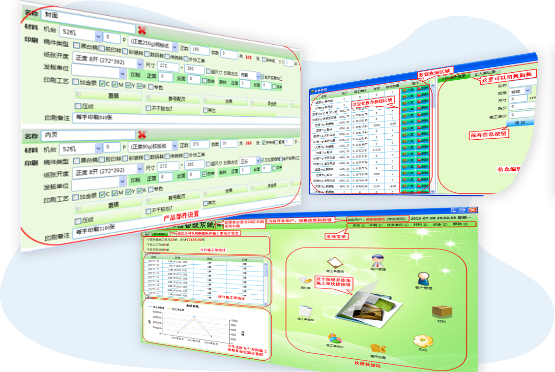 • 可實現印刷流程無紙化管理,包括財務、機臺、銷售多端功能,數據自動流轉。